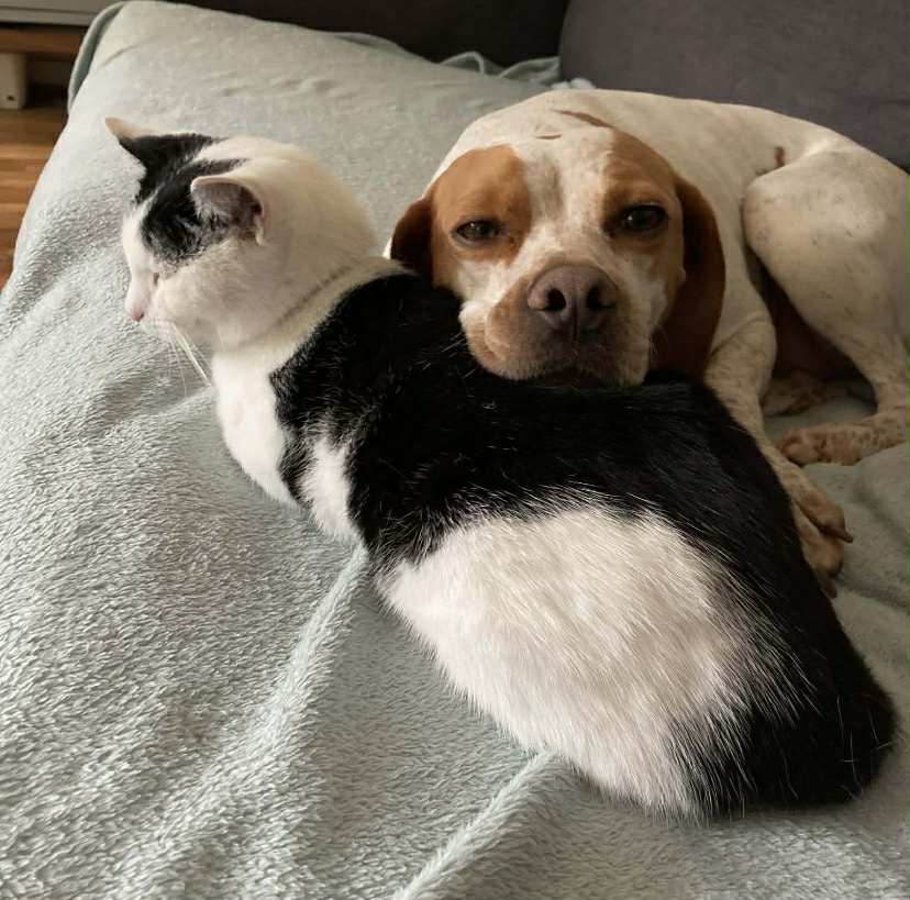 “Having grown up with a liver and white pointer, I had been keeping a watchful eye on Jerry who I noticed in a post in early 2025. With a quick search on the Facebook page, there was the video of Jerry where he seemed largely disinterested in cats!  So he seemed like he could be our boy!