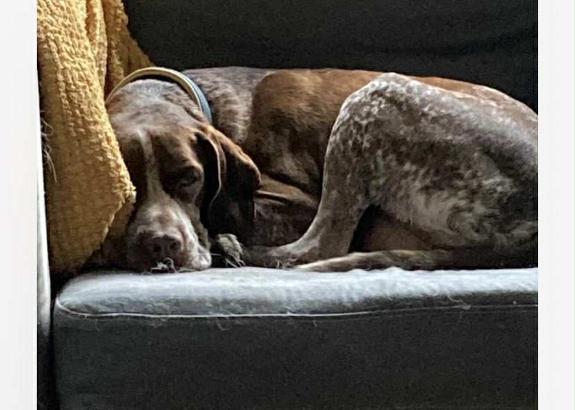 “Unfortunately, we lost Bella in the early summer of 2025, after a short period of ill health. We all felt the loss, but no one more than Christy. With her comfort blanket gone, she grew fearful again around other dogs and people. Watching her regress, we knew she needed another Pointer to share her home with.  But with a teenager, young cat, two kittens, a rabbit and two dogs we knew a match might be tough!