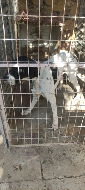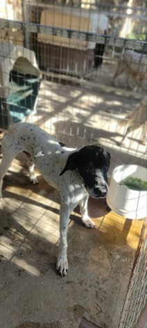 Mplek is a male pointer from Greece, approximately 9 years old.