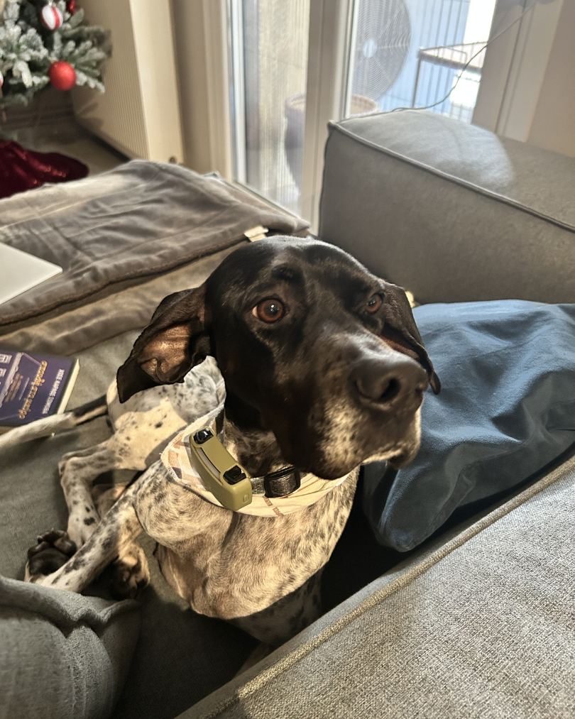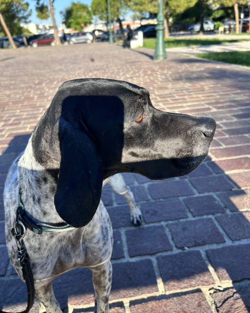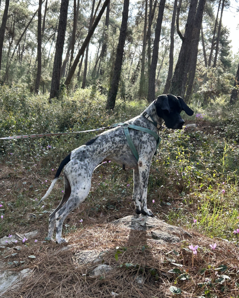 Nala, a four year old pointer from Greece, was found abandoned by a hunter in October 2025.