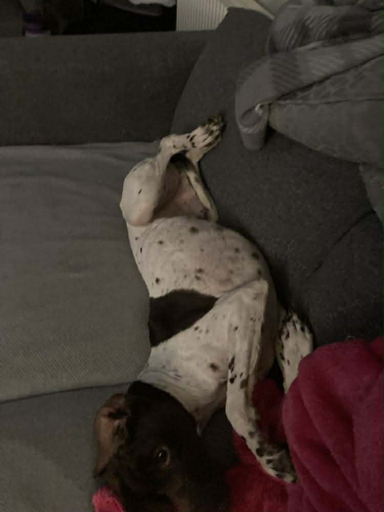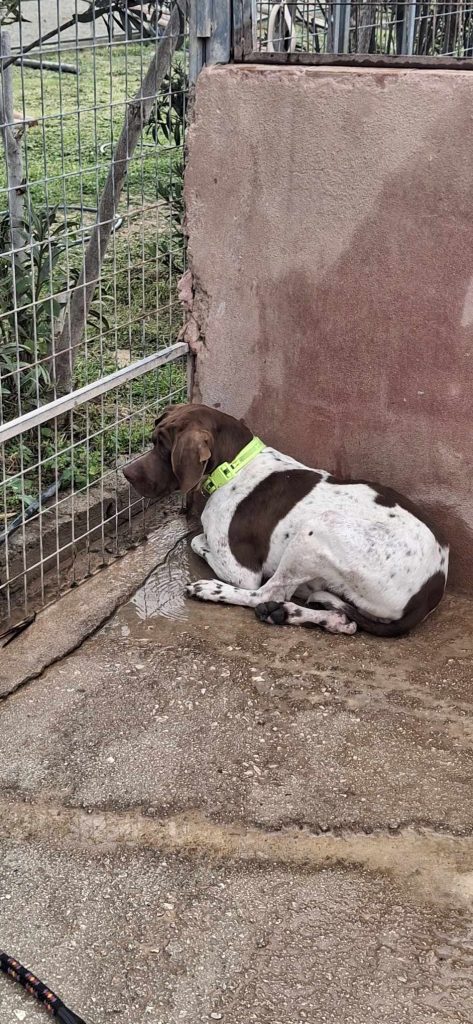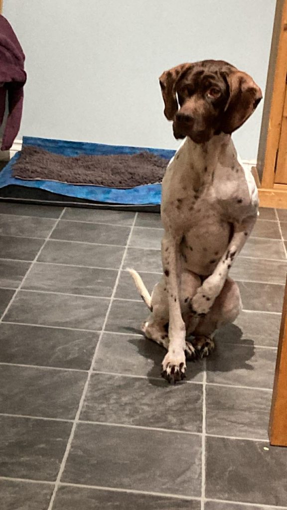 The Pointer is Peter, a terrified Pointer that was shut down completely in October 2025. With our dedicated work, love and care along with the huge help of his foster Mom he is a changed Pointer, loving life again.